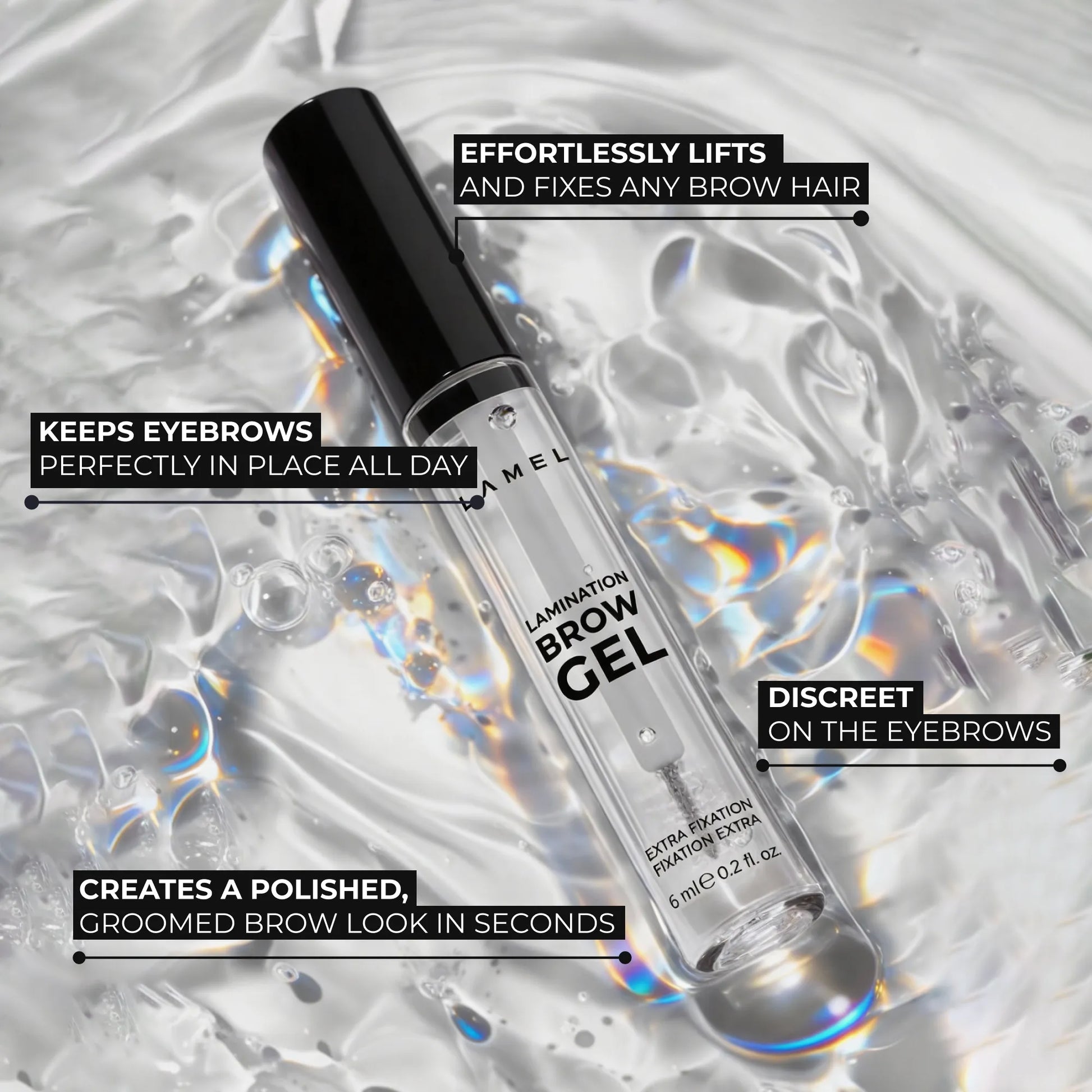 Multifunctional clear gel for eyebrows and eyelashes with a lamination effect defines the shape of the eyebrows and give them a nice look.