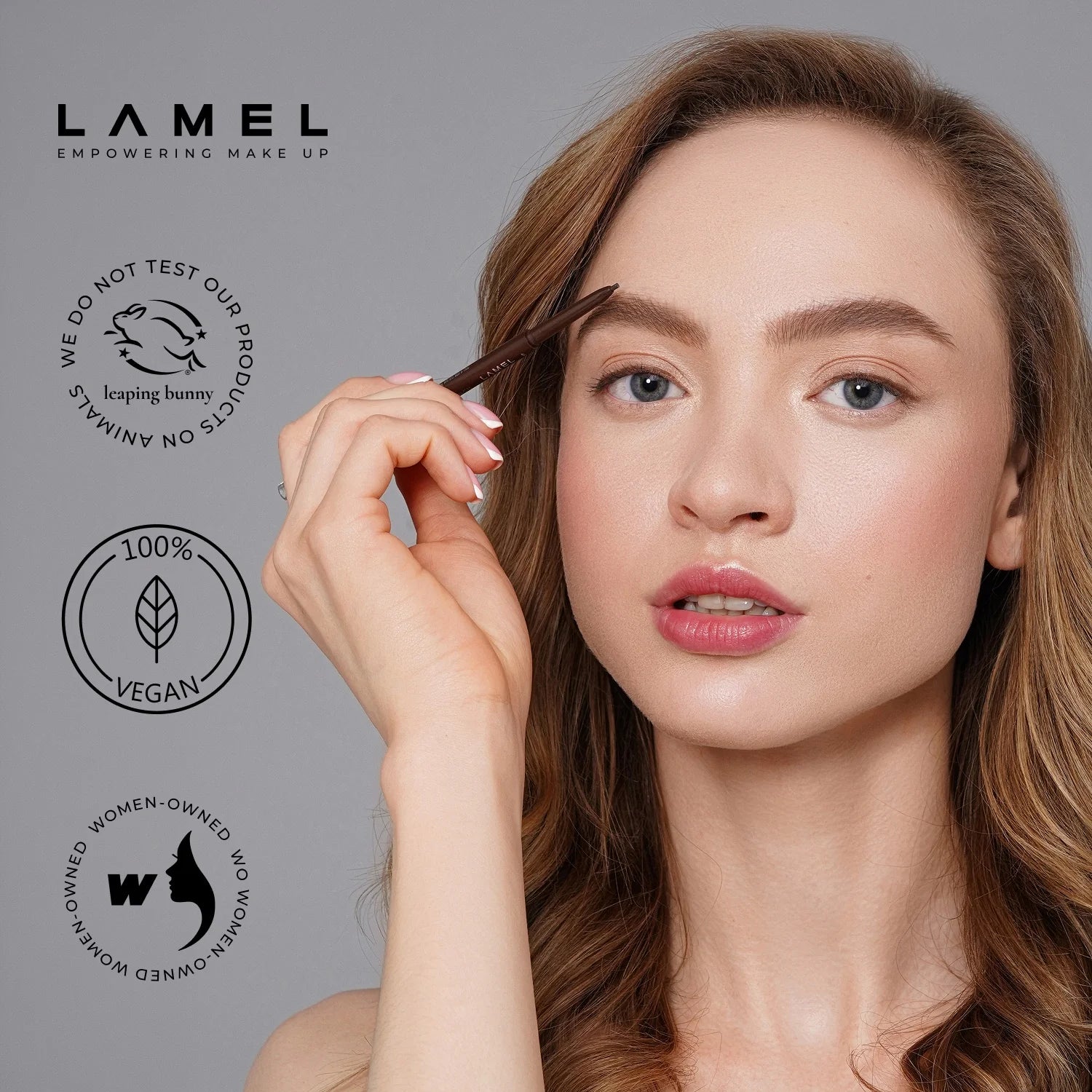 Due to the thin INSTA Micro Brow Pencil, the hair-strokes look natural and it creates natural effect of thickness. There is a mini-brush on the back of the pencil which provides even product spreading and creates the form.