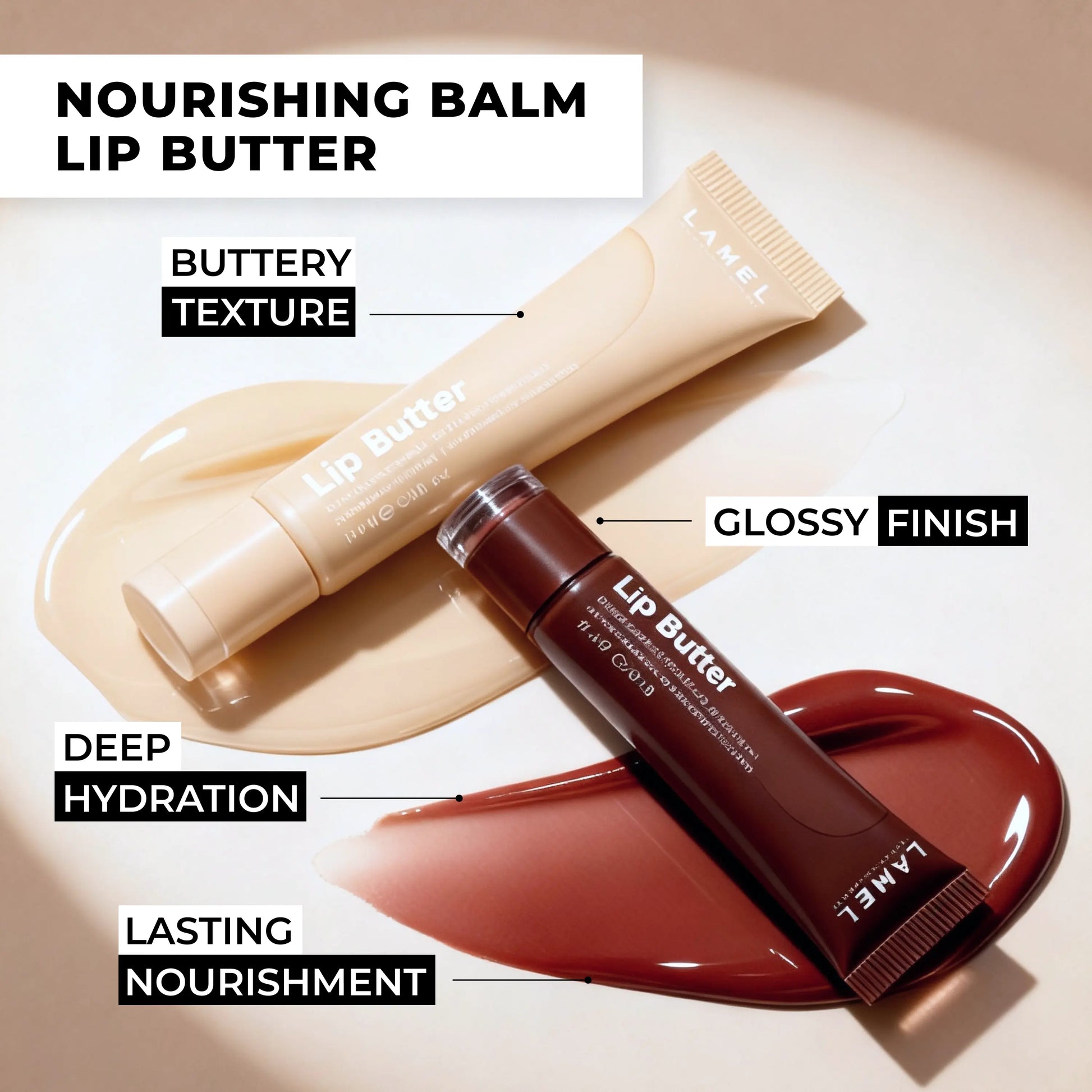 Experience everyday lip care with the Lip Butter Bundle Duo – a pair of ultra-nourishing balms that deliver lasting moisture, comfort, and high-shine finish. Each formula is enriched with Jojoba Seed Oil, Shea Butter, Raspberry Seed Oil, and Vitamin E to hydrate, soothe, and protect. The smooth, non-sticky texture glides on effortlessly, leaving lips soft, glossy, and refreshed. Perfect for daily wear or as an overnight treatment, this duo keeps your lips looking and feeling their best all day long. Pure hydration and luminous shine in every swipe.