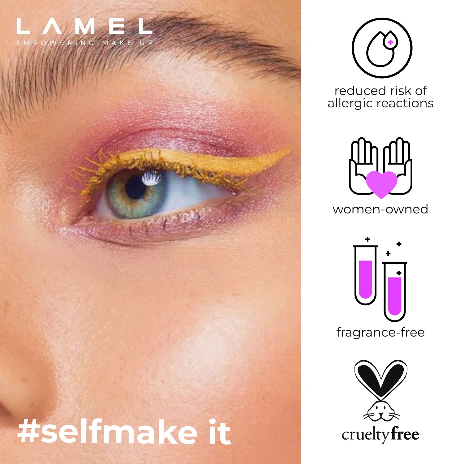 The long-wear gel Oh My color gel eyeliner is perfect for creating even lines along the lash and water lines. The soft creamy texture is easy to apply without scratching the lid and blends perfectly. A long-lasting formula keeps your makeup in perfect condition throughout the day.