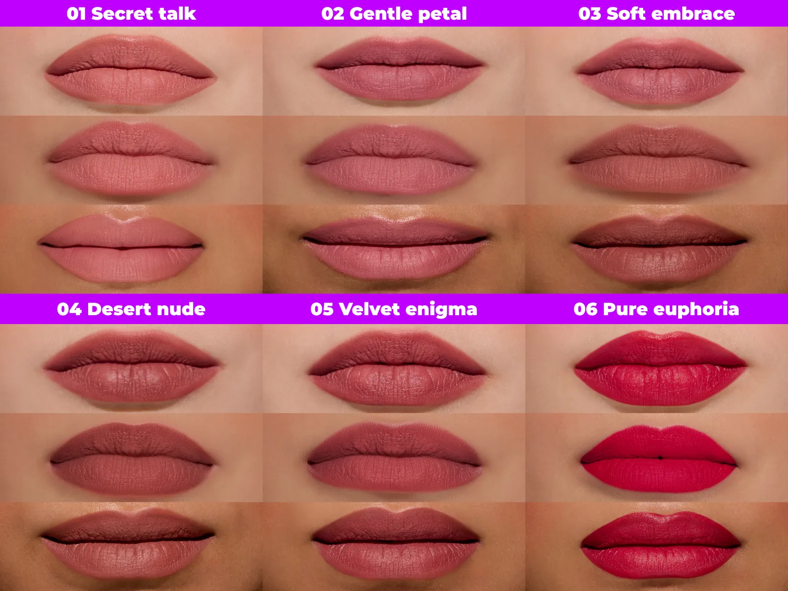 - 💃 6 Shades. Every Mood. – from effortless nude to bold night-out hues.
