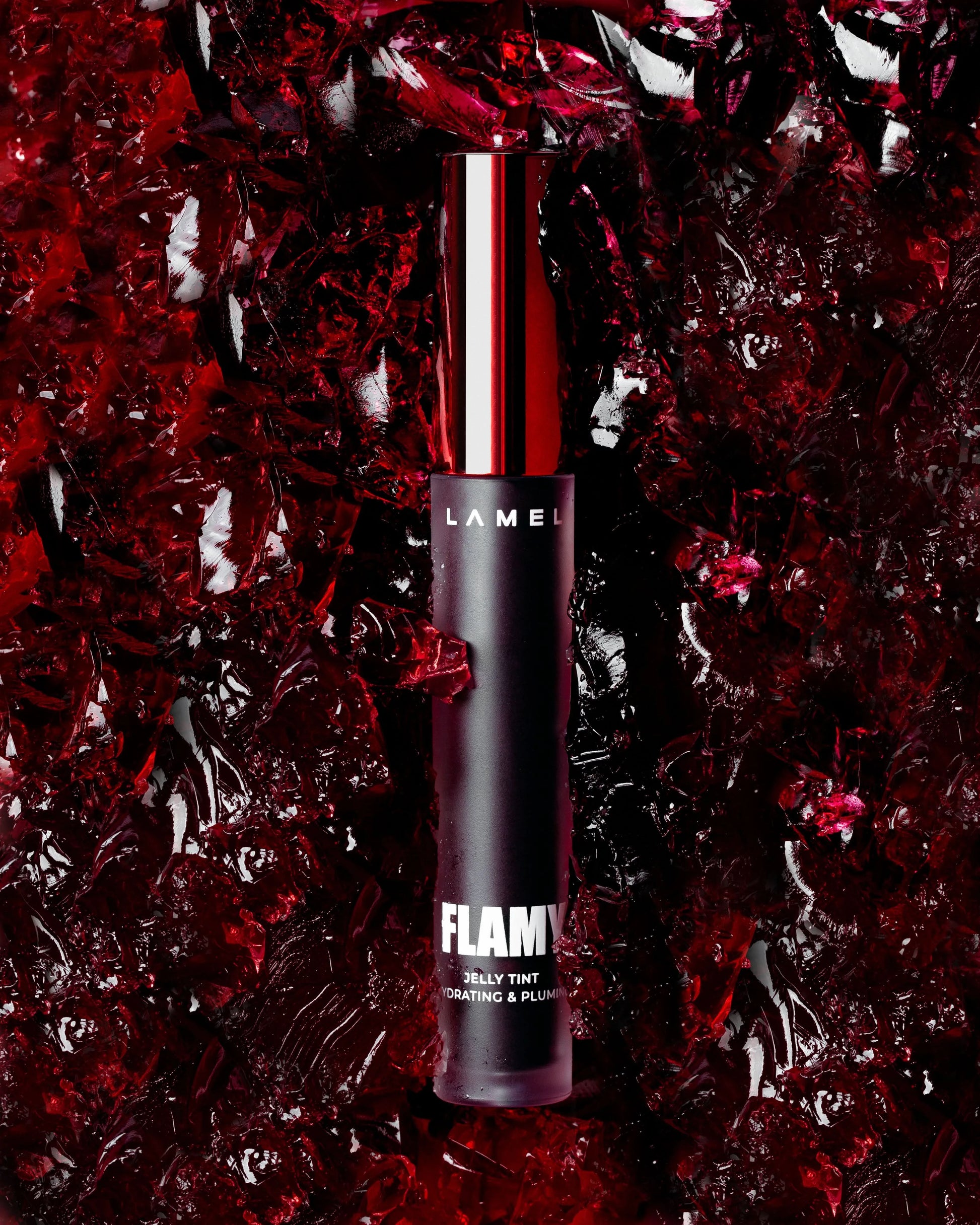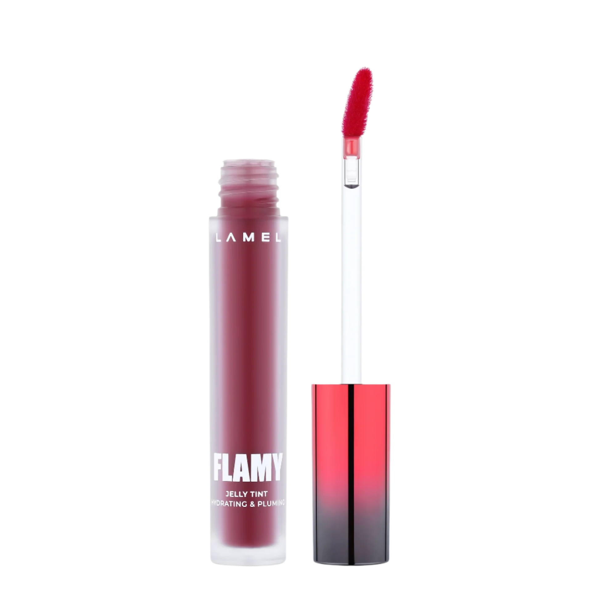 LAMEL FLAMY Jelly Tint gives your lips a juicy, glass-tint finish that lasts all day - no dryness, just shine. Its lightweight jelly texture melts on contact, coating lips in sheer, buildable pigment and a wet-look finish without any stickiness.